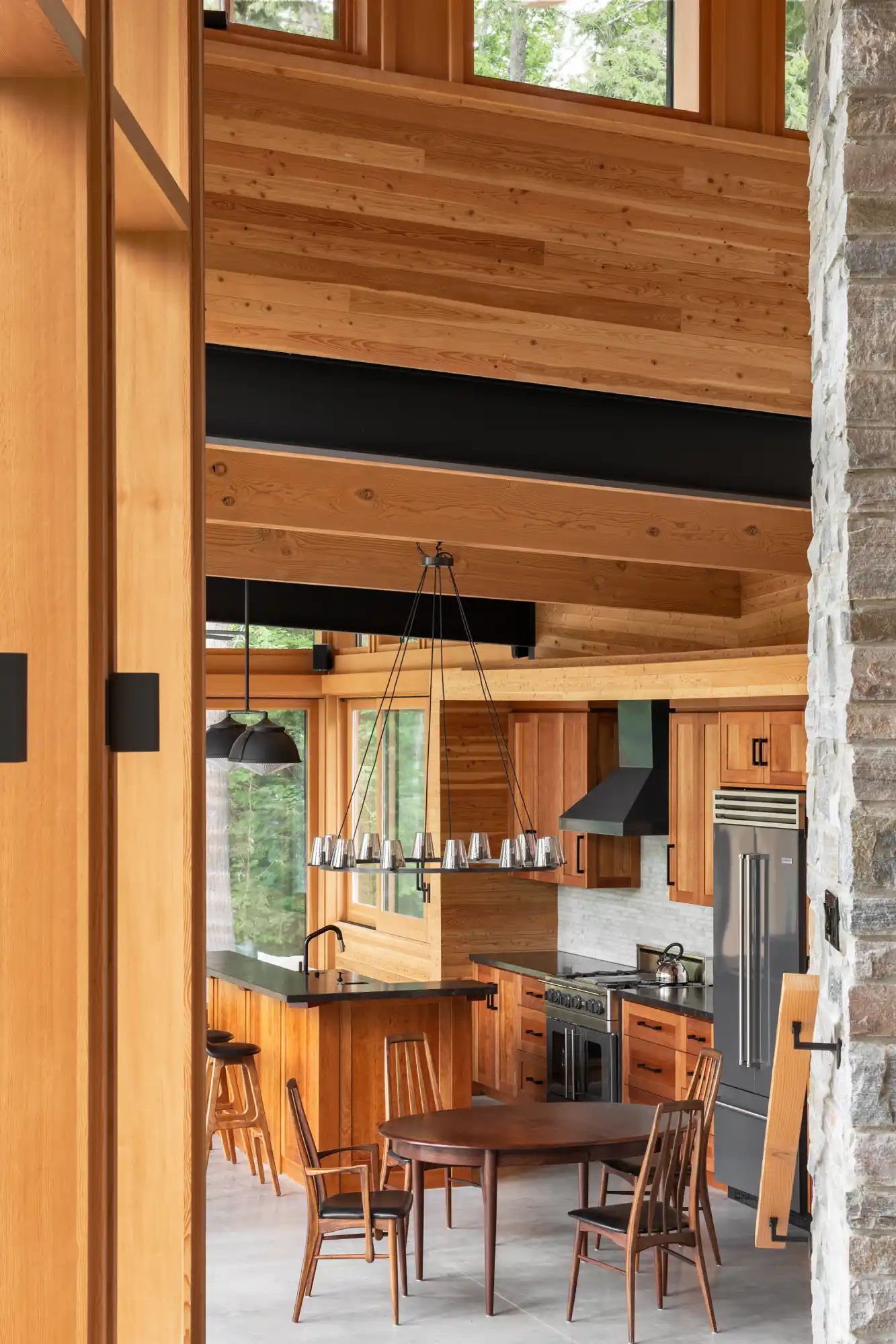 Imaginé par l’architecte torontois Trevor McIvor, l’espace respire le pur style «cottage canadien»: cuisine ouverte aux plafonds élevés, salon chaleureux avec foyer au gaz et ambiance à la fois moderne et enveloppante.