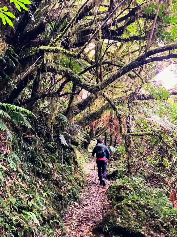 Pororari River Loop – Randonnée en boucle de 10,9 km dans le parc national de Paparoa. On a décidé de la faire dans le sens antihoraire pour terminer en longeant la rivière. Le décor m’a particulièrement marquée : une végétation dense, avec un mélange de feuillus et de palmiers, de hautes parois rocheuses et plusieurs ponts suspendus.