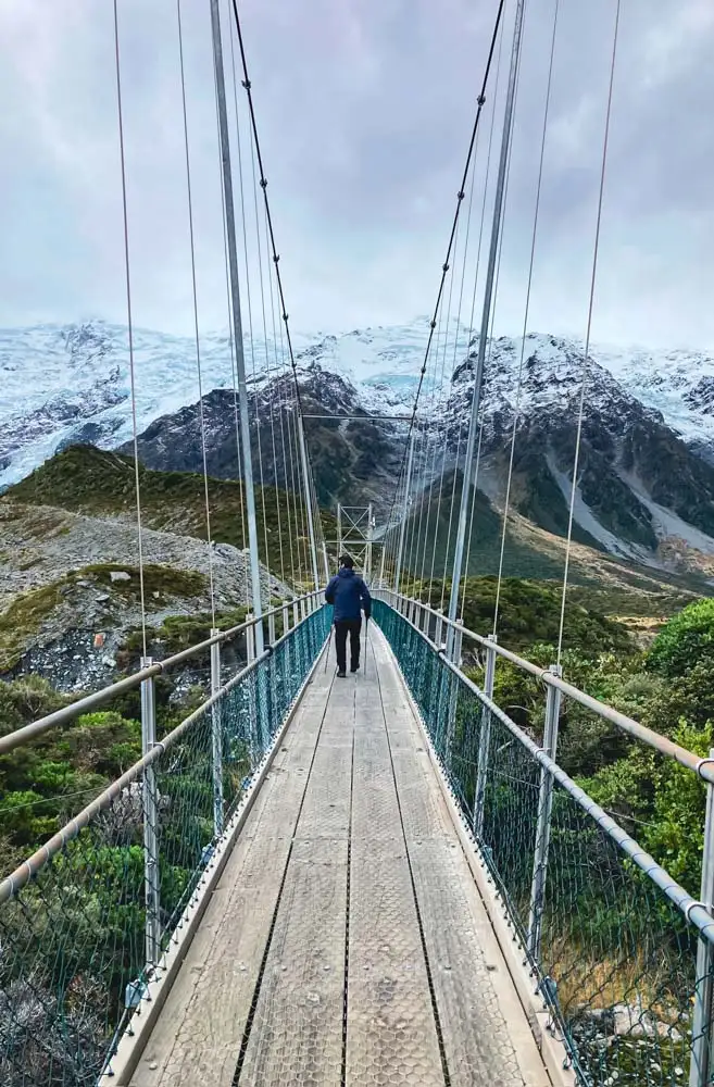 Hooker Valley Track – Super belle randonnée de 10,8 km qui permet d’avoir une belle vue sur le mont Cook. On traverse trois ponts suspendus avant d’arriver dans la vallée Hooker, où l’on peut voir un glacier de l’autre côté du lac. Chanceux comme on l’est, on a pu voir un iceberg!
