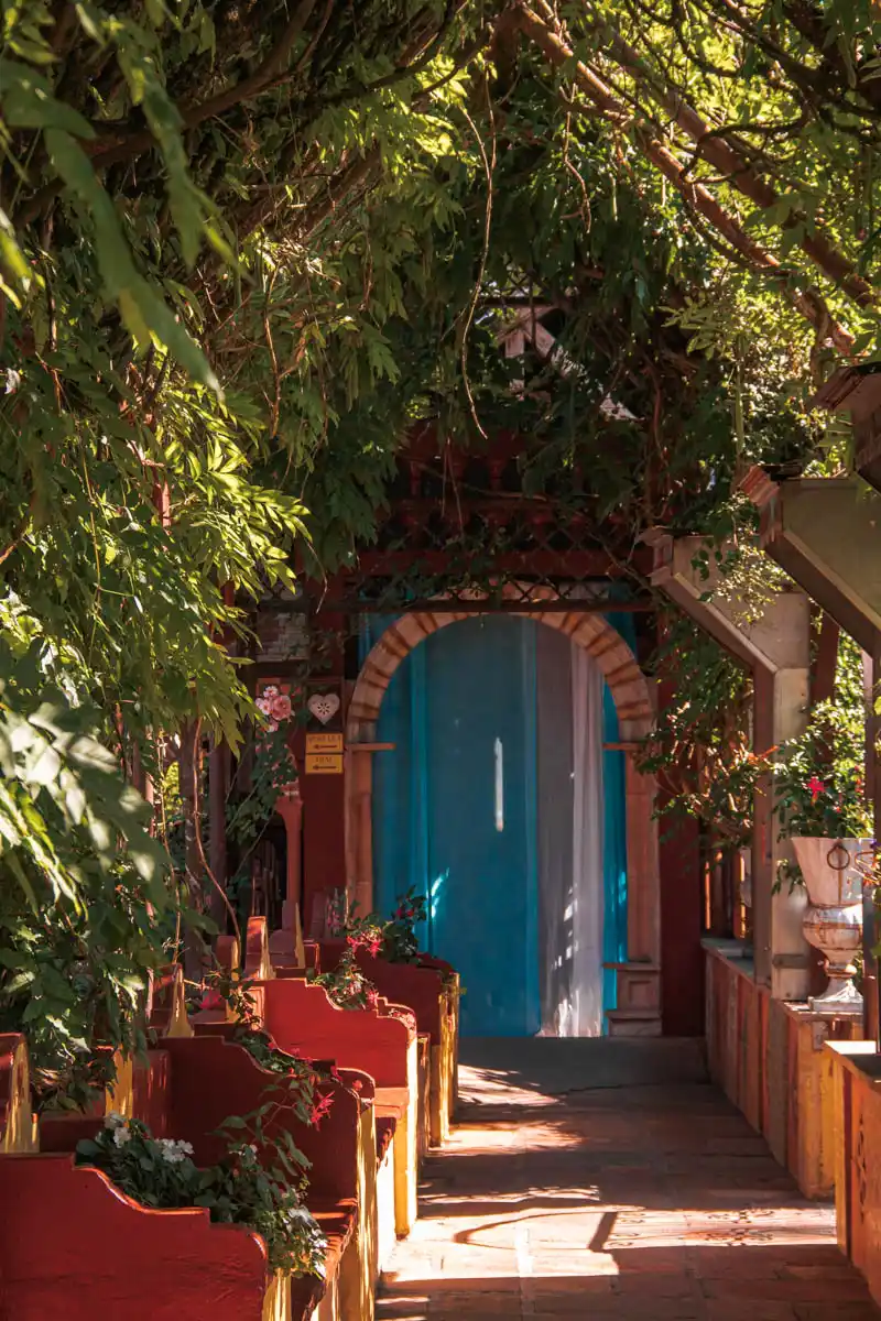 Une vingtaine d’espaces intérieurs et extérieurs forment un ensemble aux influences diversifiées: andalouses, autrichiennes, indiennes, savoyardes, suisses, tunisiennes… Chaque espace offre sa propre ambiance, ses parfums et ses couleurs uniques!